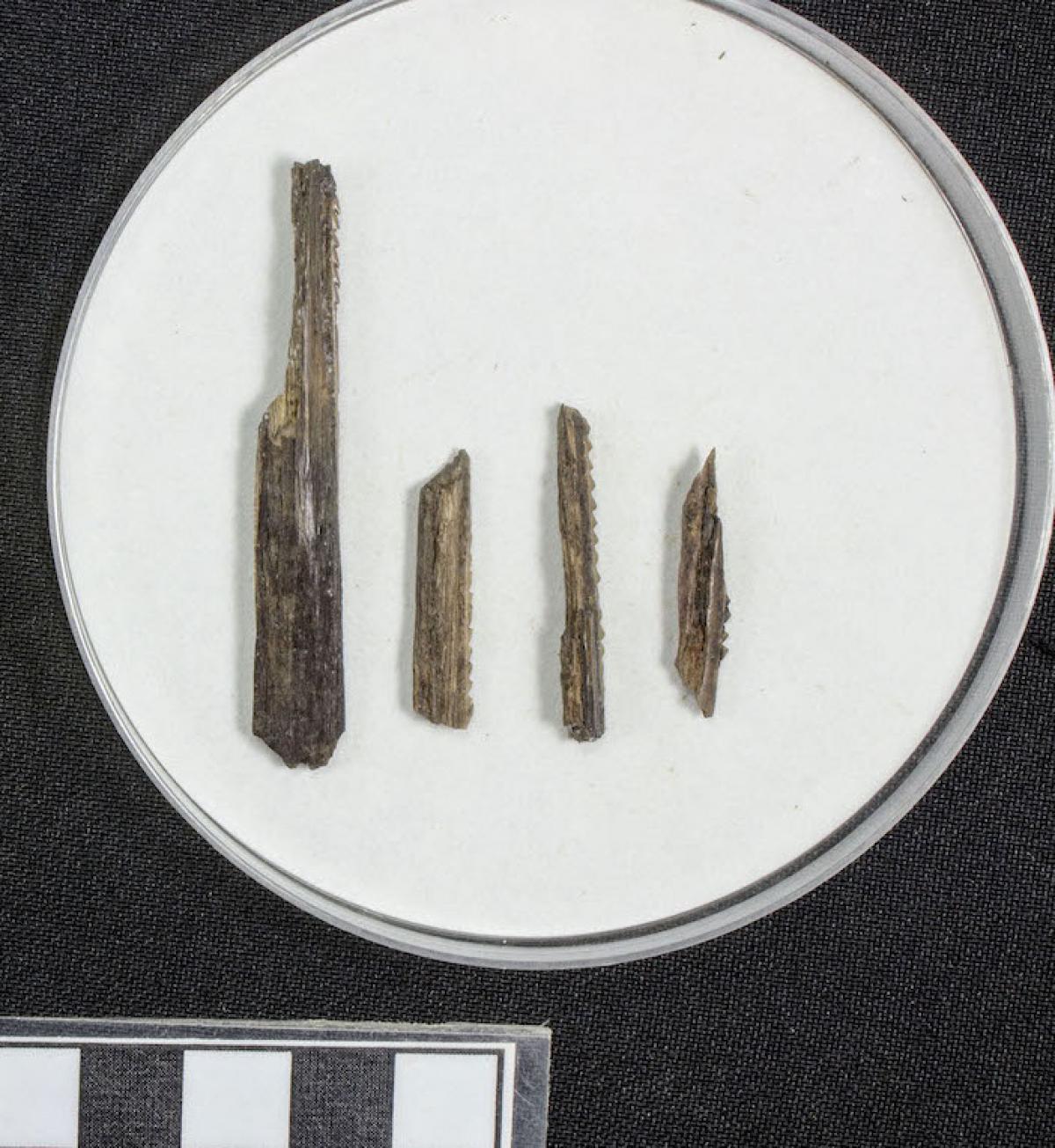 3564 - Arpones y fragmentos de arpones elaborados a partir de dentículos de pez sierra.