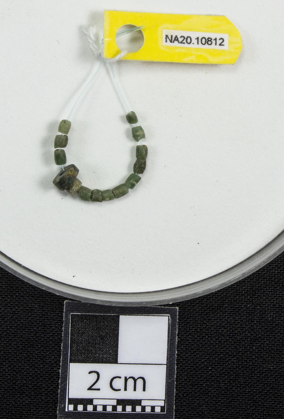 Información del recurso:  Cuentas discoidales y bicónicas de piedras verdes.