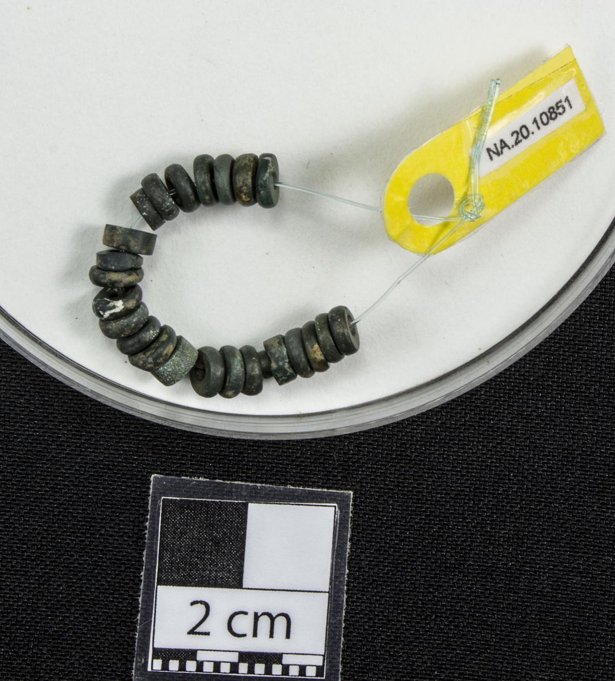 Información del recurso:  Cuentas discoidales verdes.