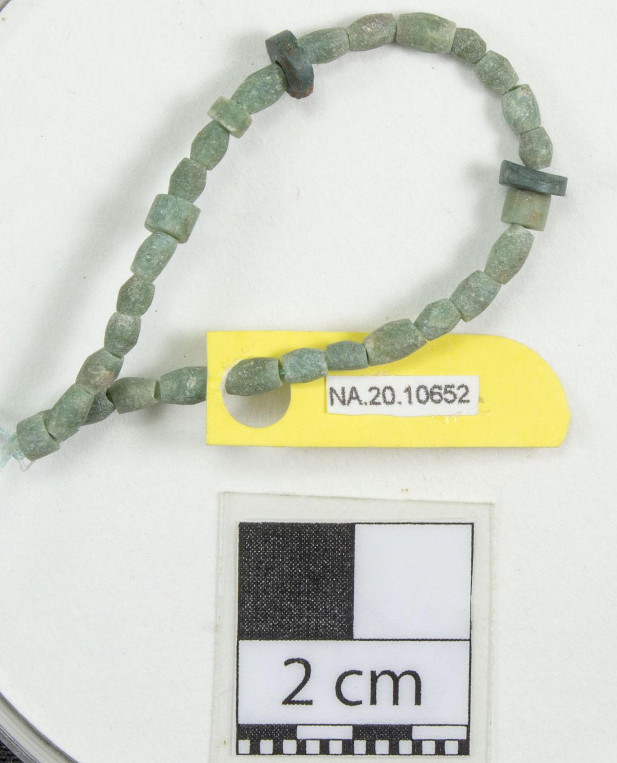Información del recurso:  Cuentas discoidales y bicónicas de piedra.