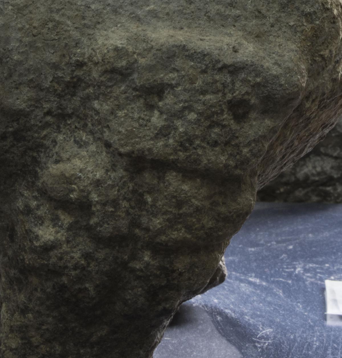 Información del recurso:  Detalle de la figura esculpida en una de las patas del metate.