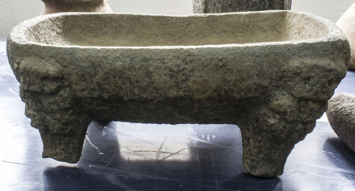 Información del recurso:  Metate con figuras antropomorfas esculpidas en cada una de sus patas.
