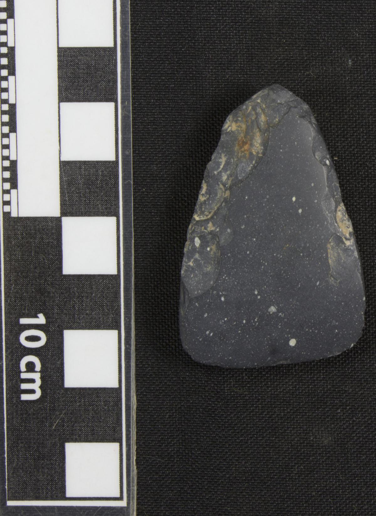 3571 - Diente perforado de tiburón. La perforación indica que pudo haber formado parte de un artefacto ornamental.