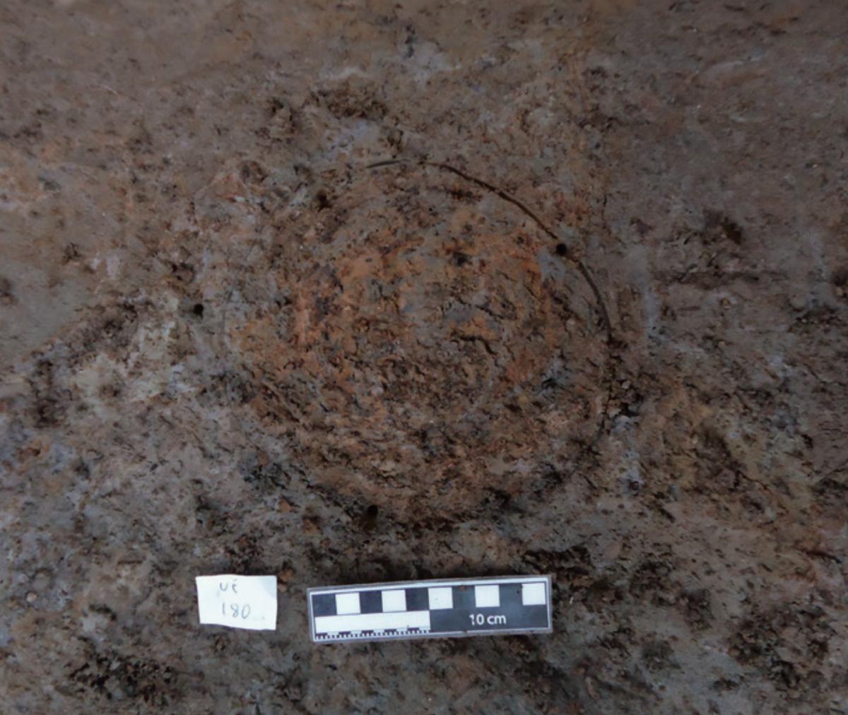 381 - T6-UE125 (a , (llamado en el año 2013, unidad UE167).Entierro de la tumba T6. Depósito de huesos humanos en posición primaria localizado a 3,48 m de profundidad. Es un entierro múltiple...