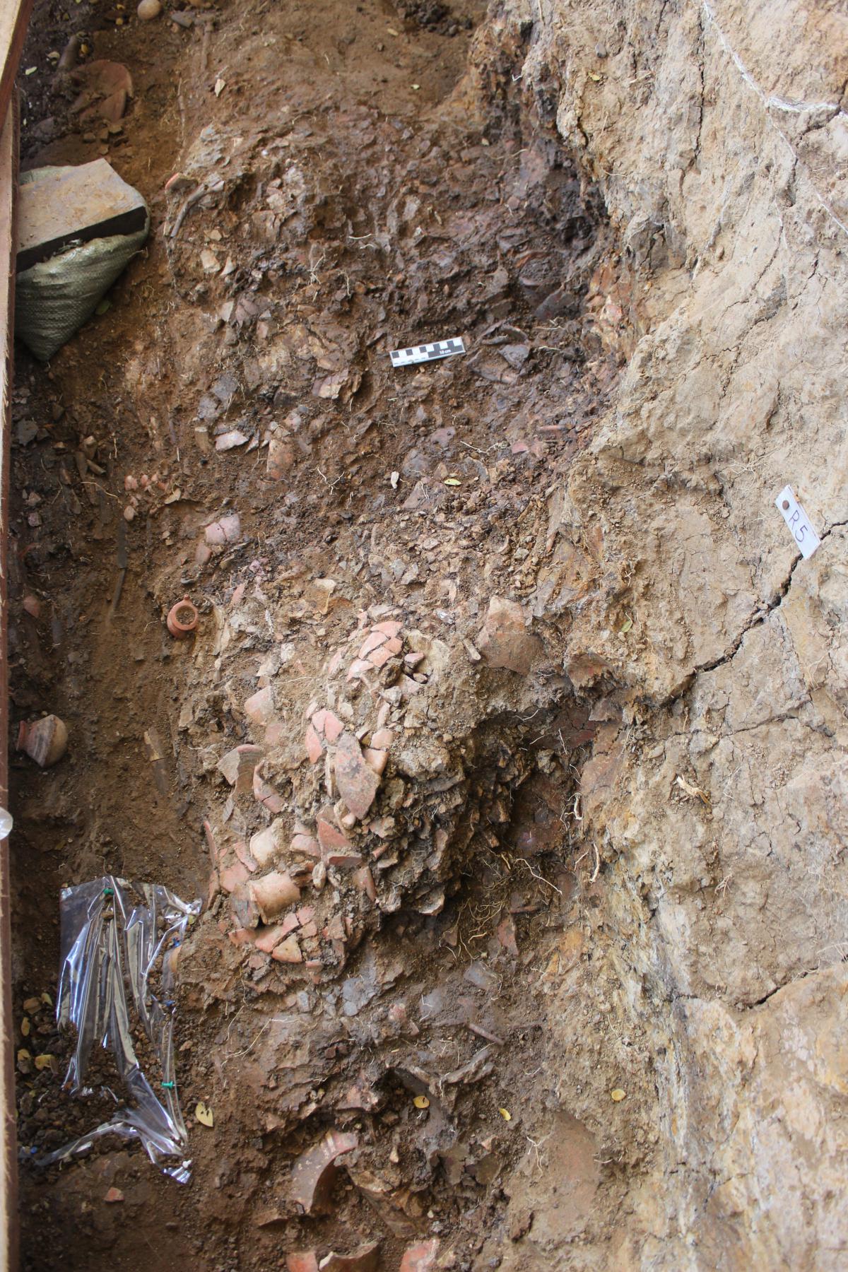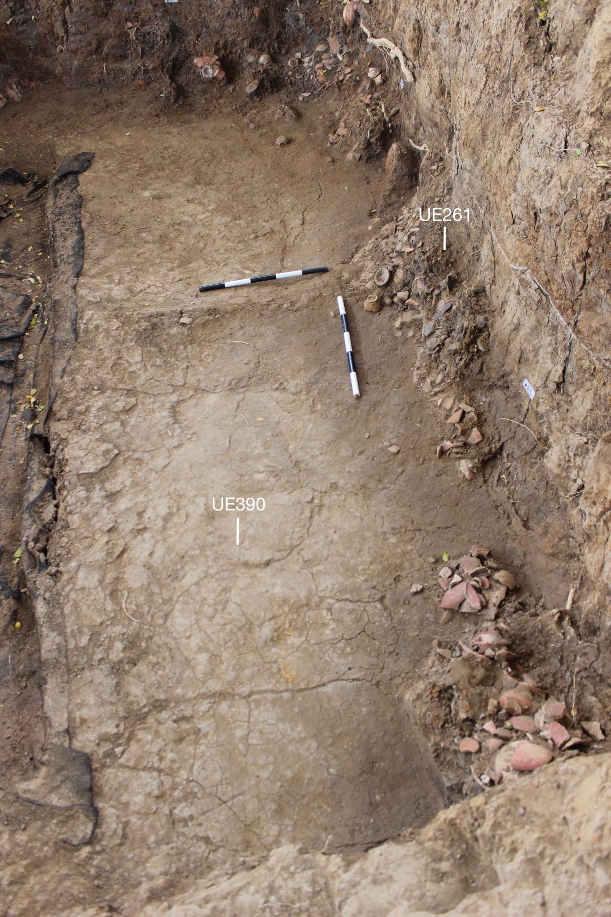 Información del recurso:  El hundimiento de la plataforma tuvo que producirse sin que la ofrenda colocada sobre ella hubiese quedado sepultada aún por los sedimentos de aluvión aportados por las crecidas del río. De lo contrario, y al igual que sucedió en el caso de la tapadera de la tumba T7, que veremos, los componentes de la ofrenda hubieran conservado inicialmente su geometría original y su posición relativa dentro del conjunto. A este episodio pertenecen, en concreto, las unidades UE261, UE393, UE394 y UE239.