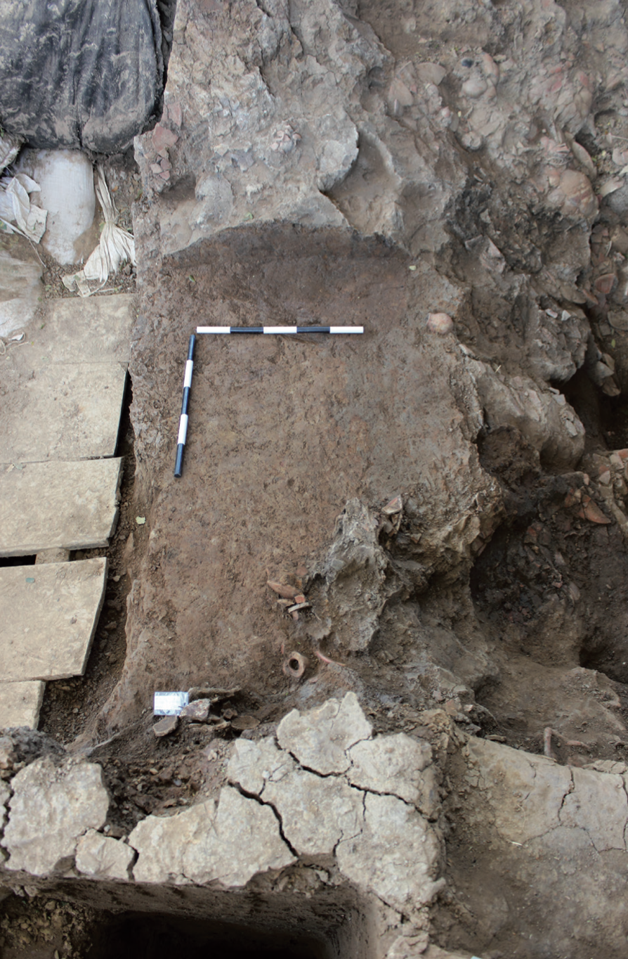 381 - T6-UE125 (a , (llamado en el año 2013, unidad UE167).Entierro de la tumba T6. Depósito de huesos humanos en posición primaria localizado a 3,48 m de profundidad. Es un entierro múltiple...
