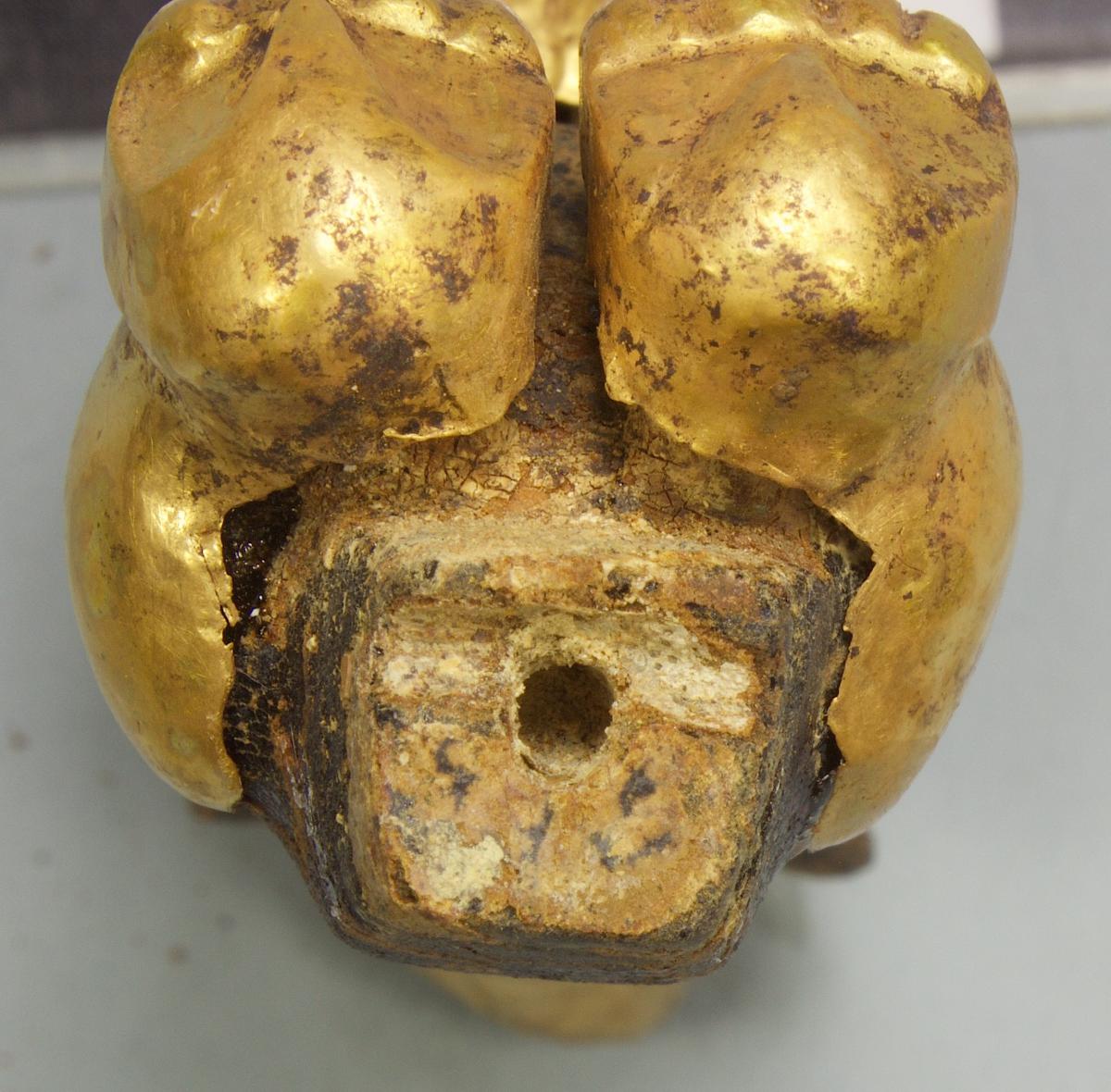 434 - Funda de oro de orejera de madera. Corresponde con el tapón registro# 5371.