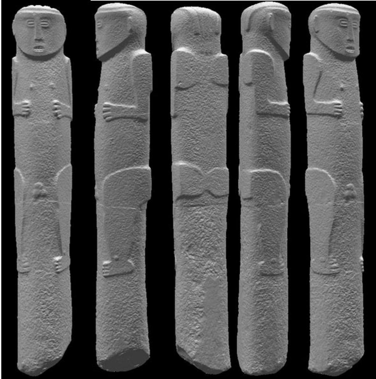 Las esculturas analizadas proceden originalmente de El Caño. Dos de ellas tienen forma de personas, y las otras dos son animales (un armadillo y un felino) colocados sobre un pedestal. Fueron observadas con un microscopio digital DinoLite 200x y nicoles cruzados. Los resultados indican que, en todos los casos, el material seleccionado es la dacita, una roca ígnea volcánica con alto contenido en hierro. Su composición está entre las composiciones de la andesita y la riolita, y, al igual que la andesita, está compuesta principalmente por feldespato plagioclasa con biotita hornblenda y piroxeno (augita y/o enstatita). Son rocas que se pueden encontrar en el entorno de El Caño.