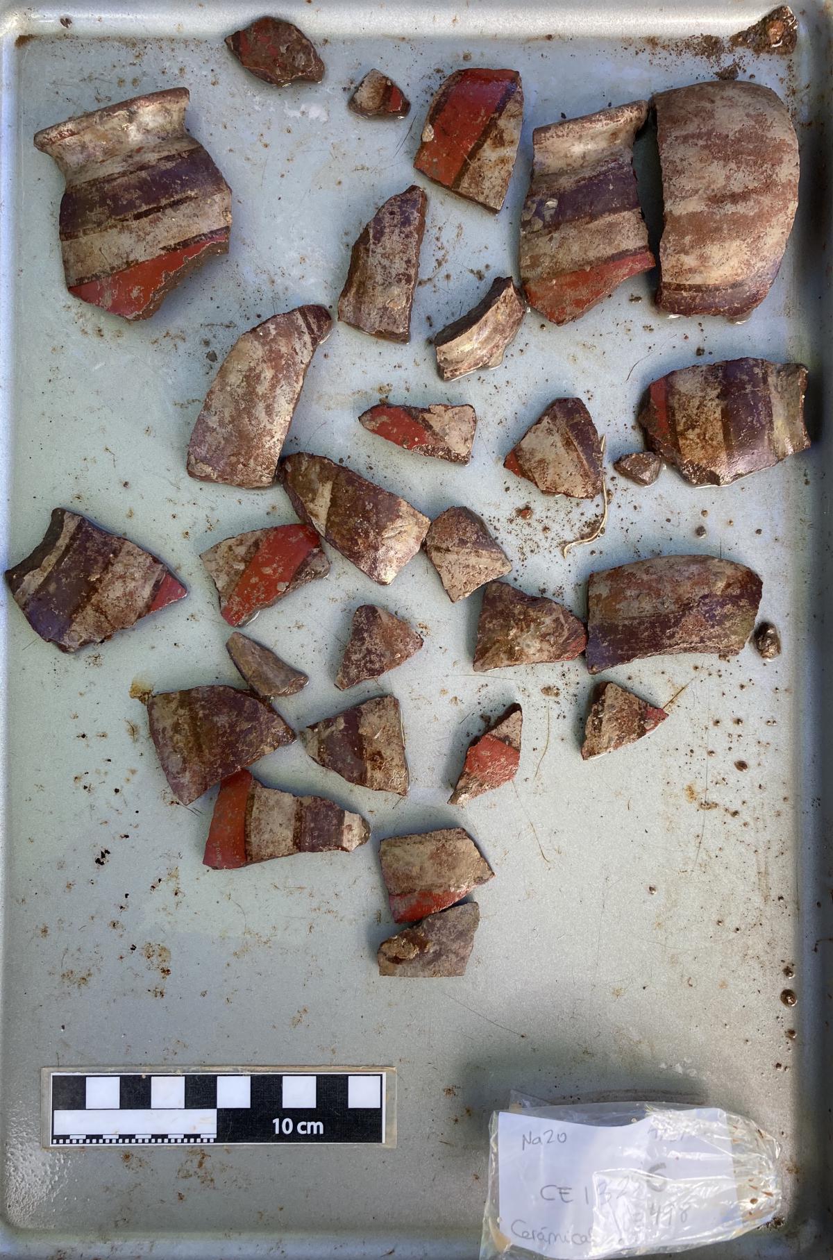 417 - T1-UE096 (a. Ofrenda colocada sobre una plataforma vegetal (Ofrenda 2) tras la colmatación de la tumba. Formada por un grupo de vasijas zoomorfas, pequeños platos, cuencos y ollas, probabl...