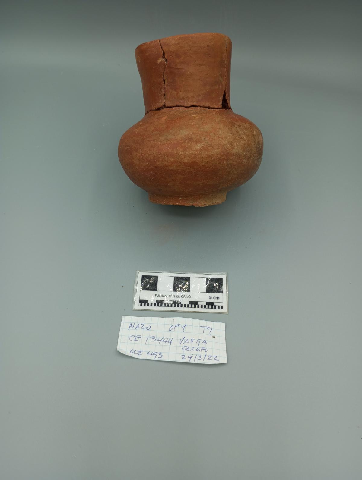 3632 - “Jarra globular de pasta roja plena, con base anular, borde recto y cuello corto