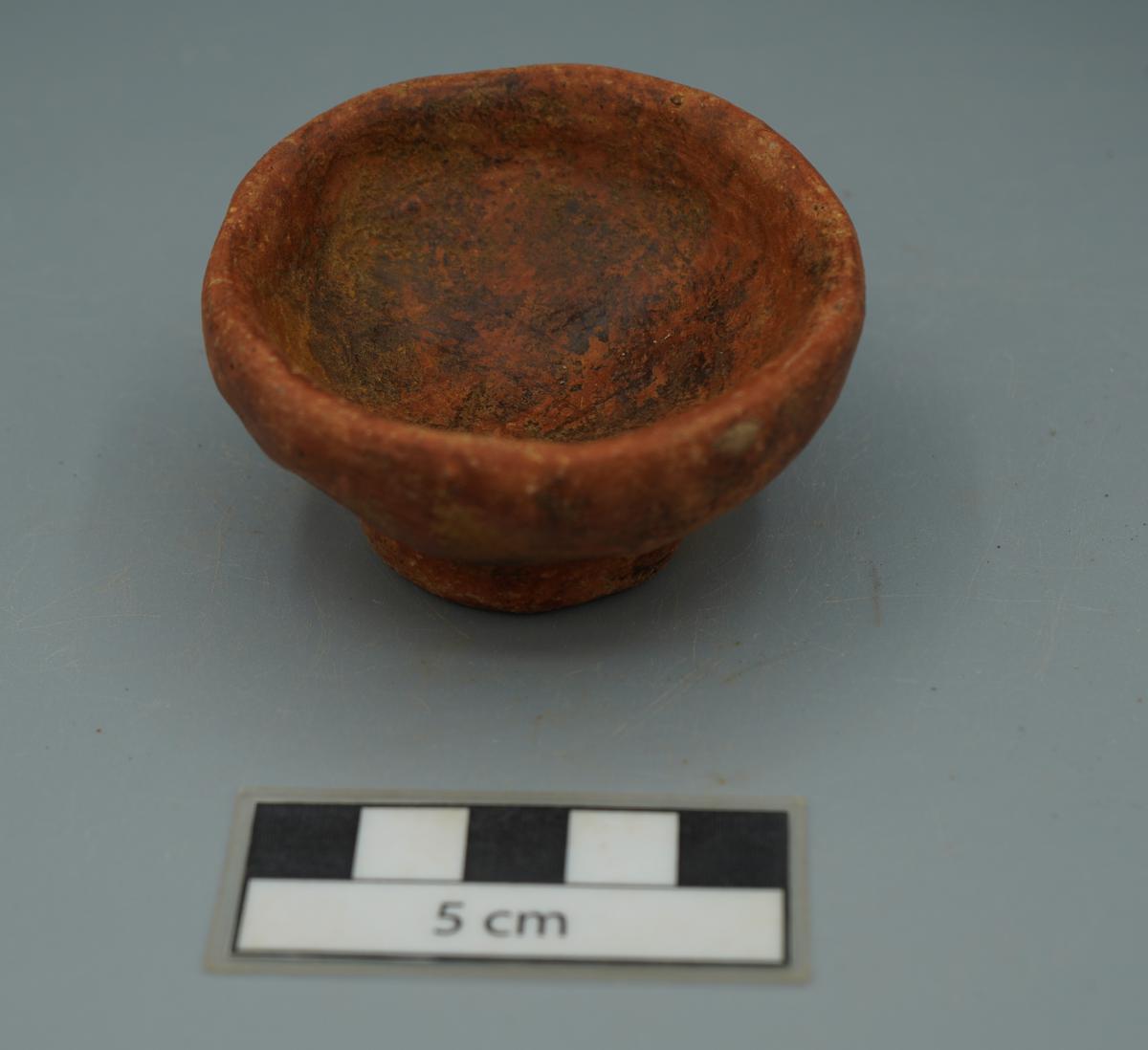 3568 - Pedestal bajo bicónico de engobe rojo y borde redondeado