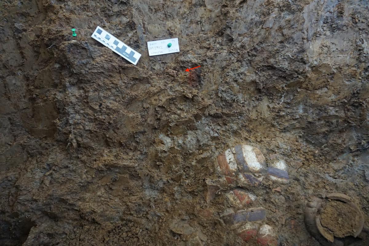 381 - T6-UE125 (a , (llamado en el año 2013, unidad UE167).Entierro de la tumba T6. Depósito de huesos humanos en posición primaria localizado a 3,48 m de profundidad. Es un entierro múltiple...