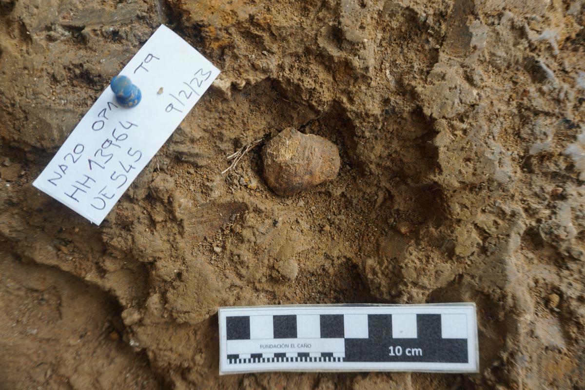 381 - T6-UE125 (a , (llamado en el año 2013, unidad UE167).Entierro de la tumba T6. Depósito de huesos humanos en posición primaria localizado a 3,48 m de profundidad. Es un entierro múltiple...
