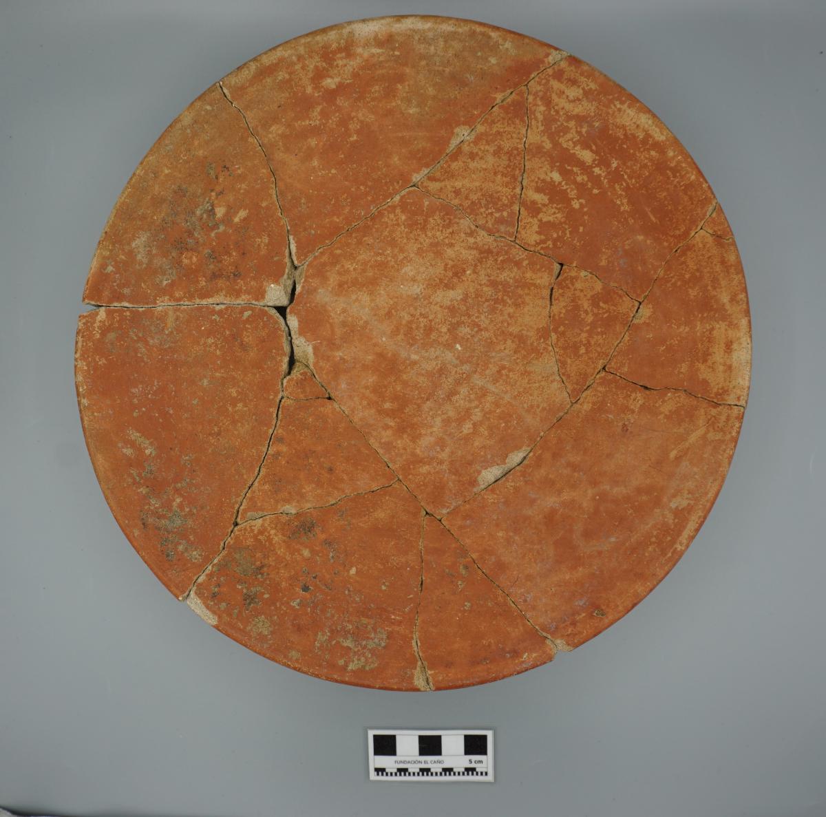 3568 - Pedestal bajo bicónico de engobe rojo y borde redondeado