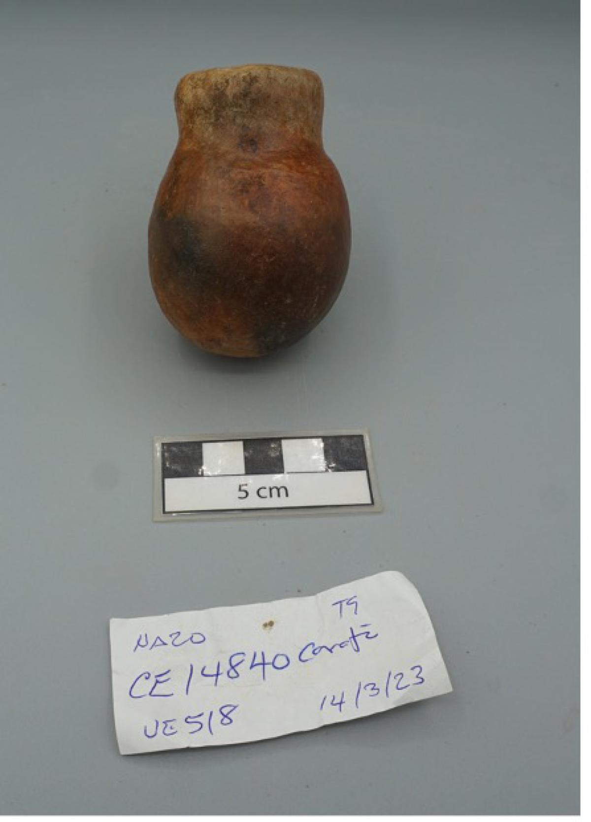 Estaba asociada al individuo I12 enterrado en la tumba T2. Parte de la unidad UE106 (cuerpos, ajuares y ofrendas) se deslizaron hacia el tercer nivel de la tumba. Por esta r...