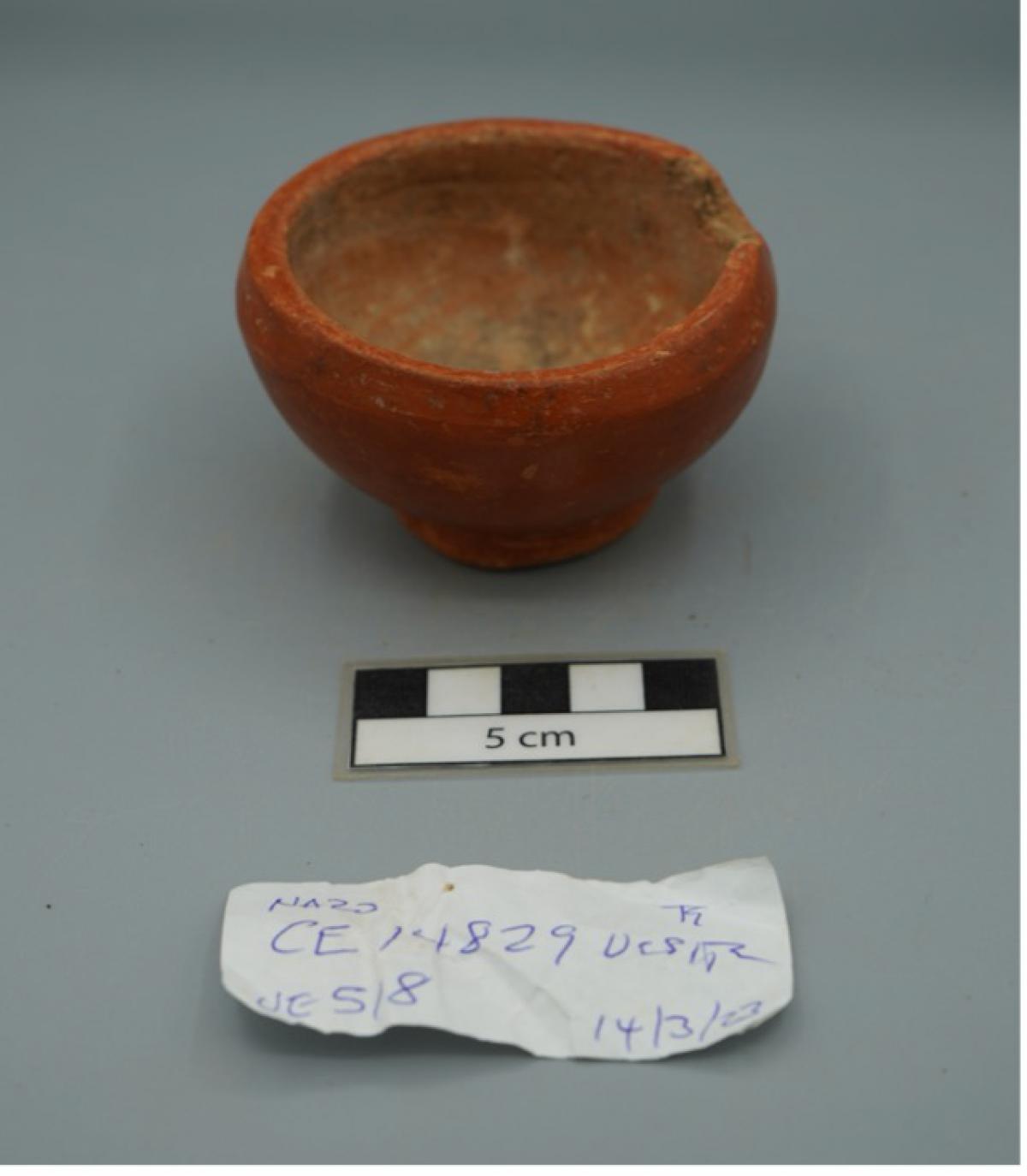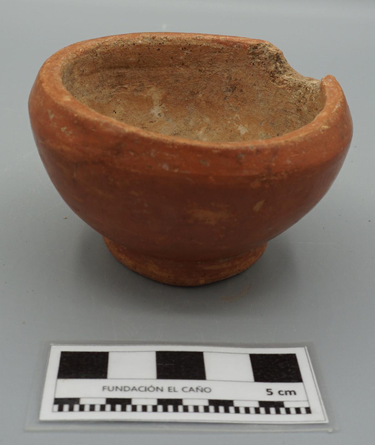 3568 - Pedestal bajo bicónico de engobe rojo y borde redondeado