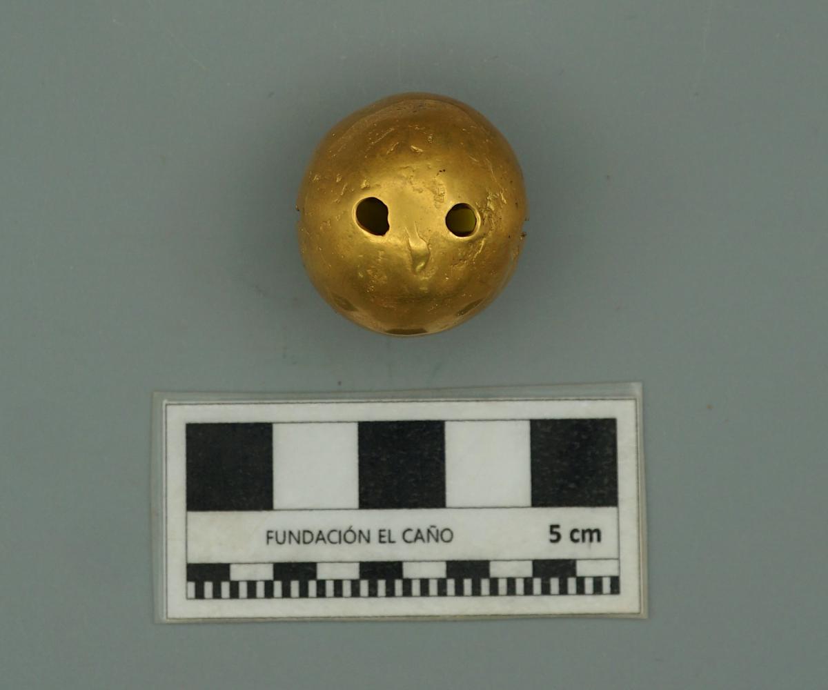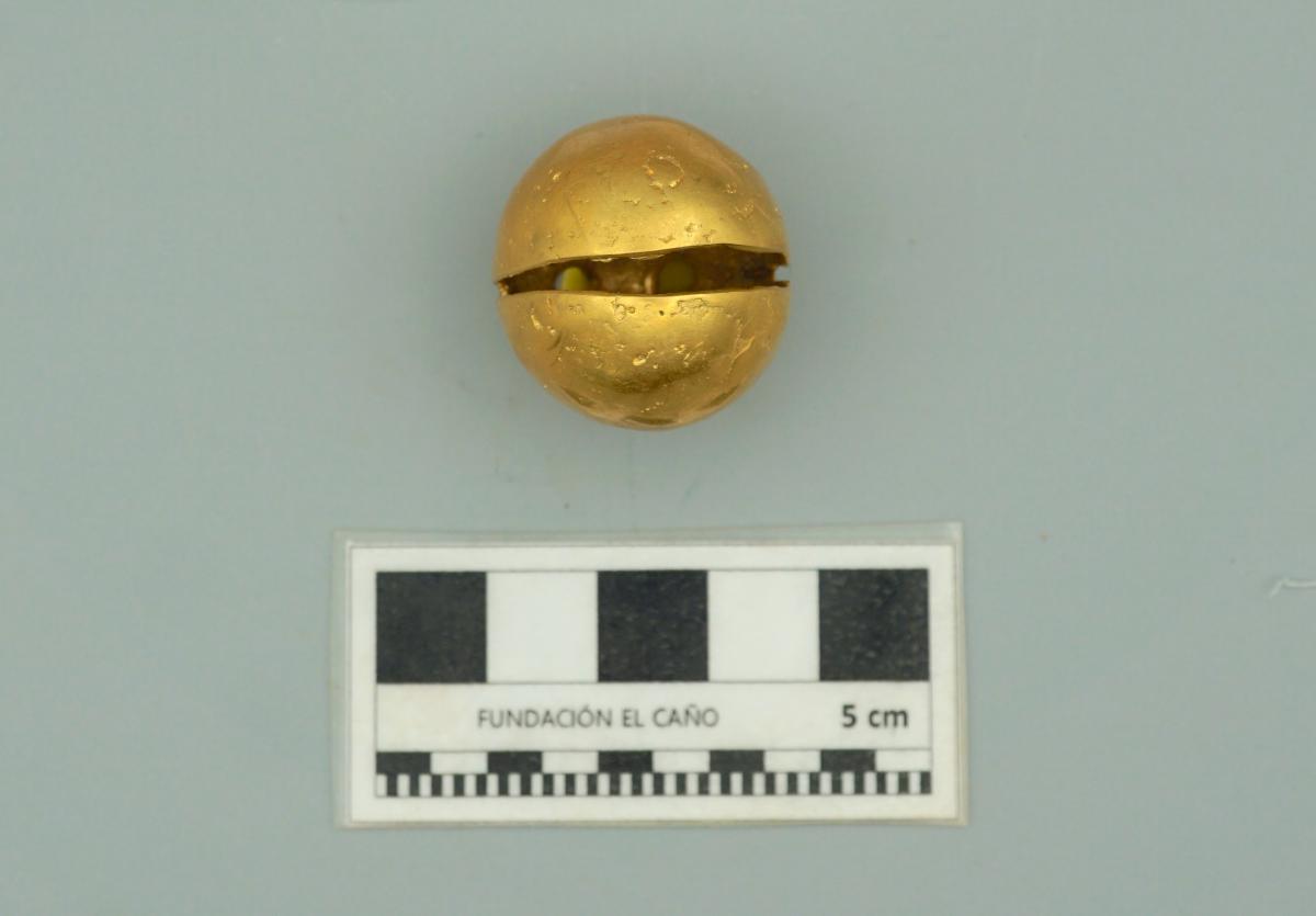 Cascabel esférico con orificios, elaborado a la cera perdida.