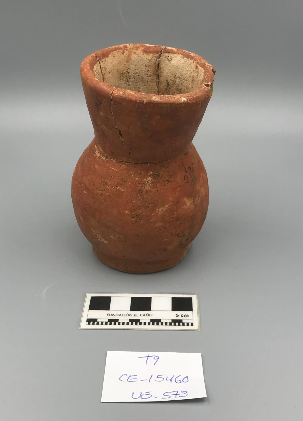 3632 - “Jarra globular de pasta roja plena, con base anular, borde recto y cuello corto