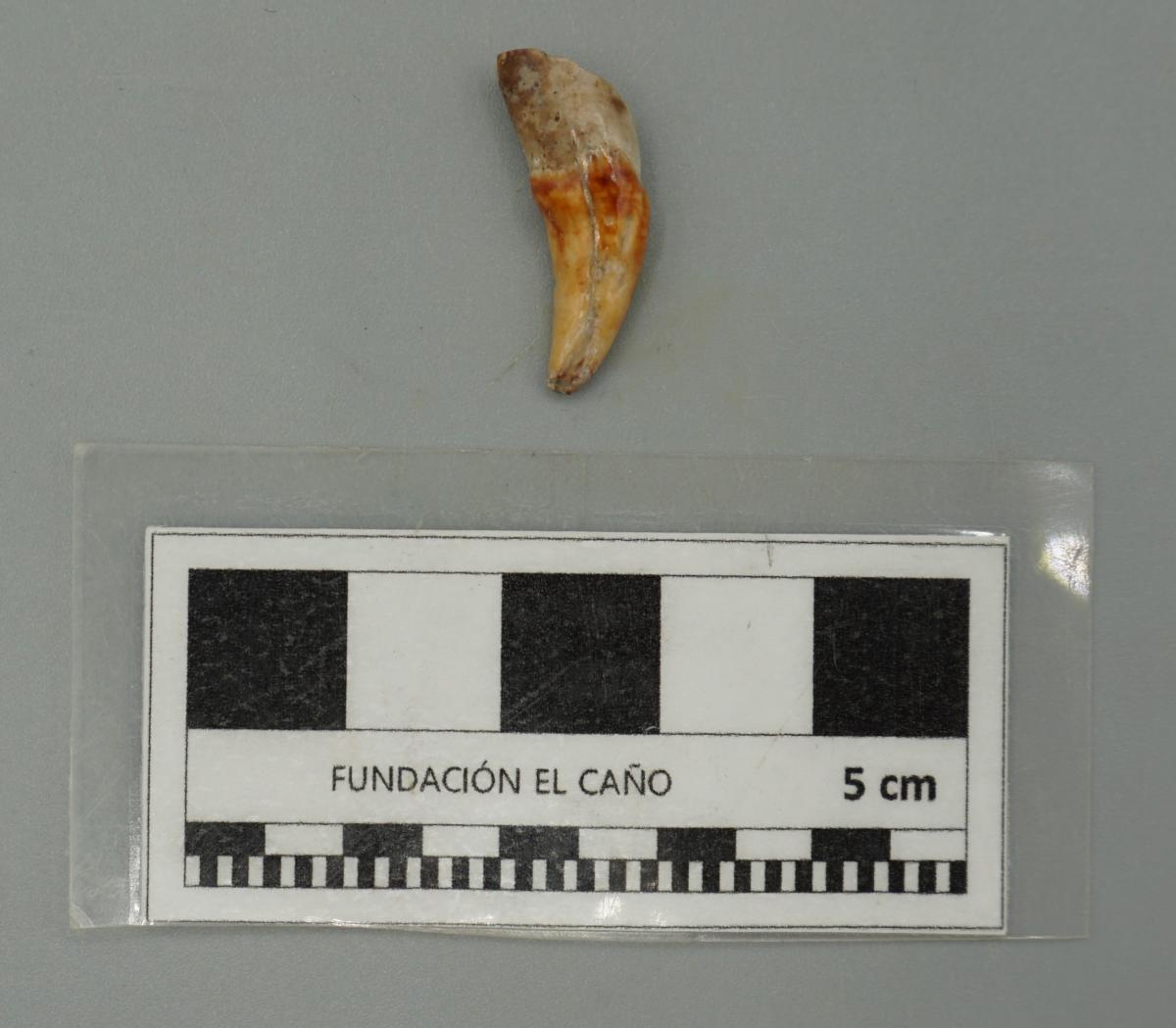 3592 - Canino de perro perforado. Aunque se encuentra fragmentado, se conservan sus partes.