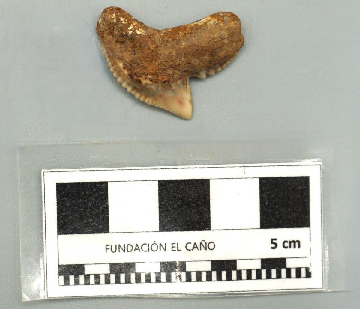 3571 - Diente perforado de tiburón. La perforación indica que pudo haber formado parte de un artefacto ornamental.