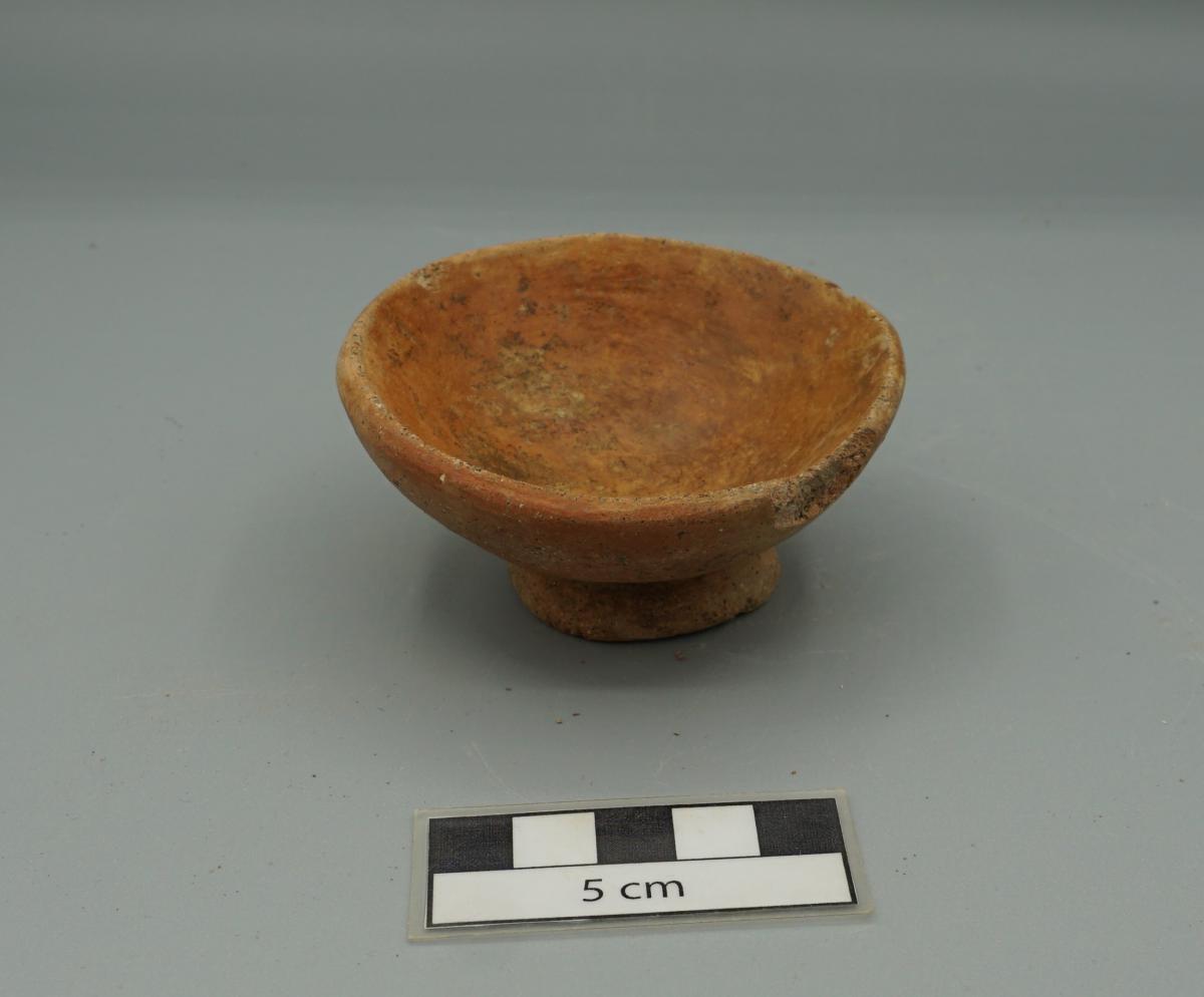 3568 - Pedestal bajo bicónico de engobe rojo y borde redondeado