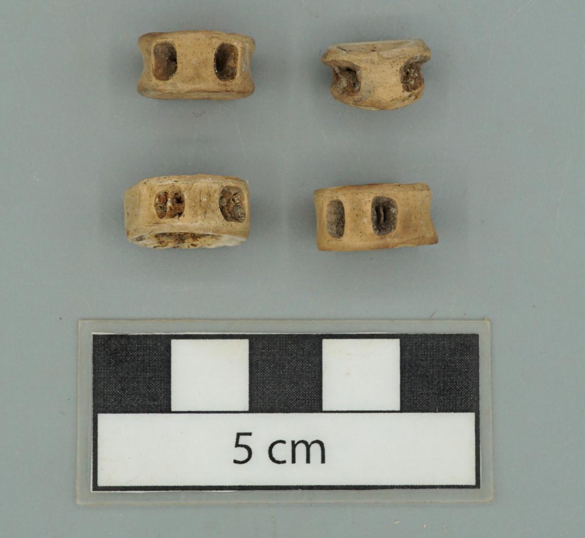 3567 - Conjunto de caninos de felino que integraban un collar ornamental, posiblemente asociado a símbolos de poder.