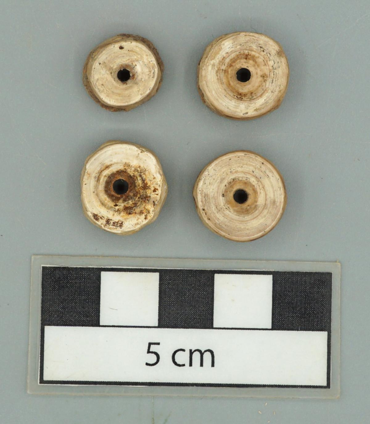 3553 - Cuenta de forma trapezoidal. Presenta dos perforaciones.