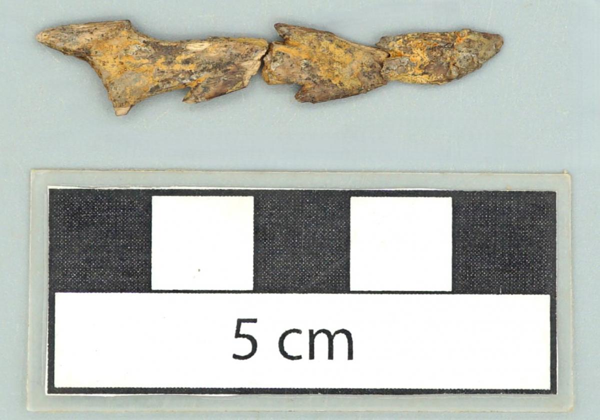 Fragmentos de arpón realizado con un dientes de un pez sierra.