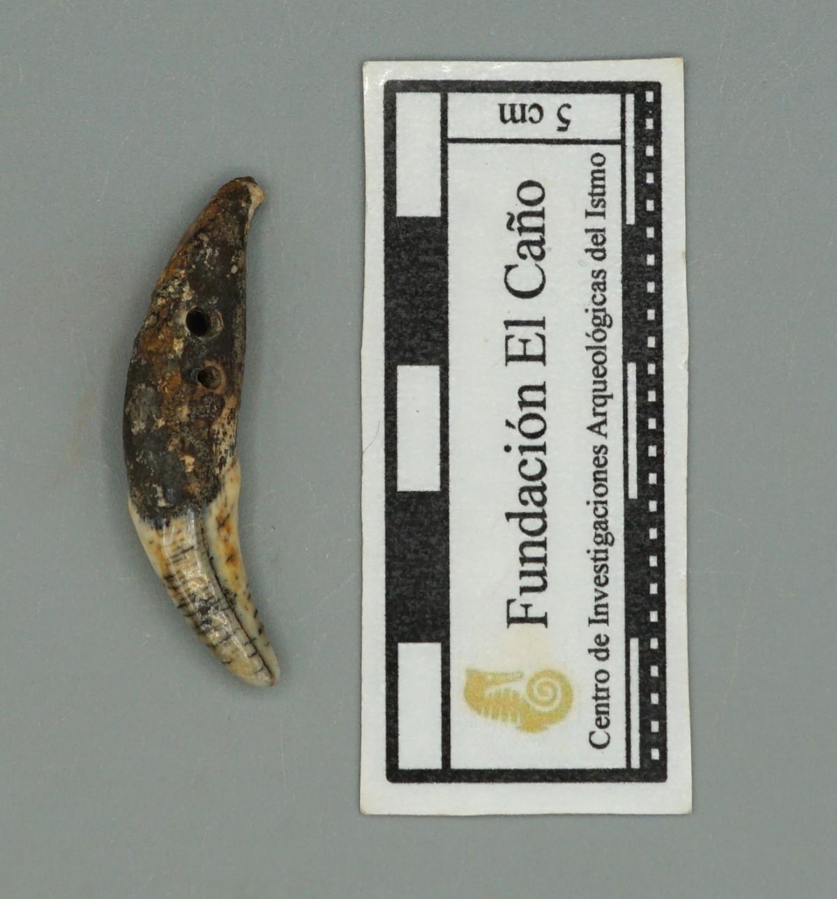 Canino de perro con doble perforación, aparentan ser de tipo tubular cilíndrica.
