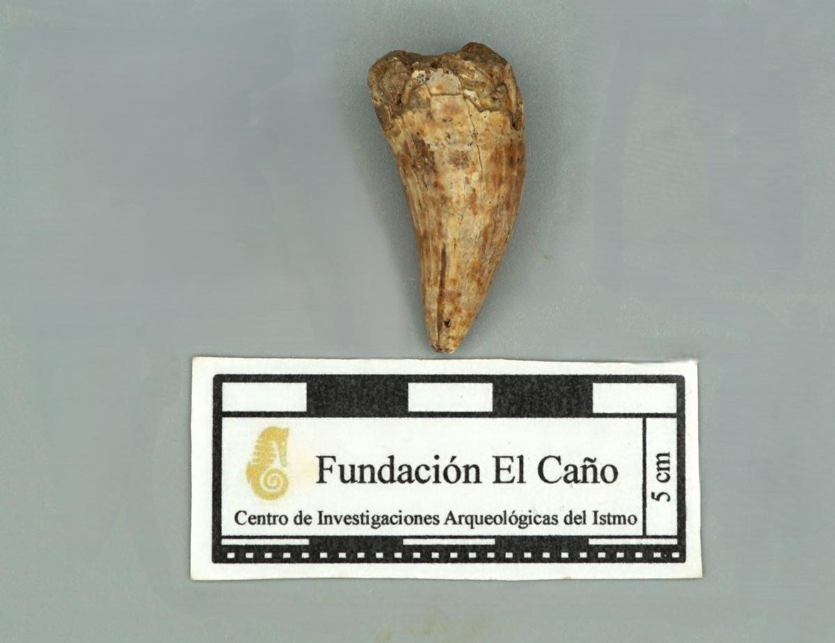 Vistazo de un diente de cocodrilo, se encuentra fragmentado.