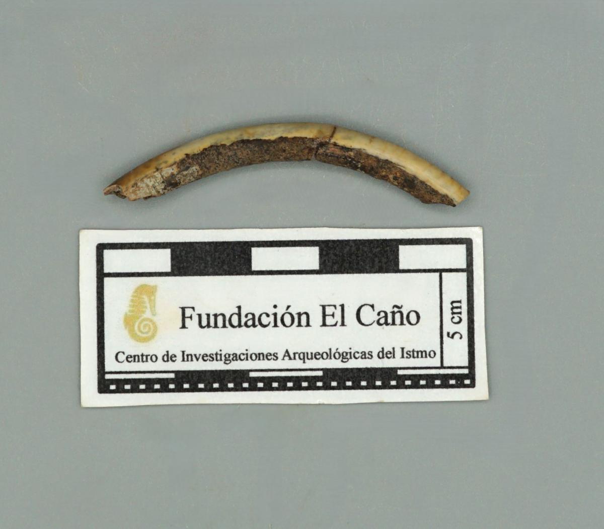 Incisivo de conejo pintado (Cuniculus Paca) se encontraba fragmentado en 2 y se ubicaba en la parte superior de la mandíbula.
