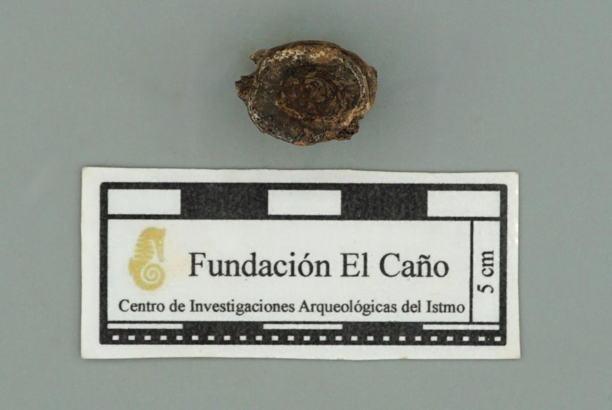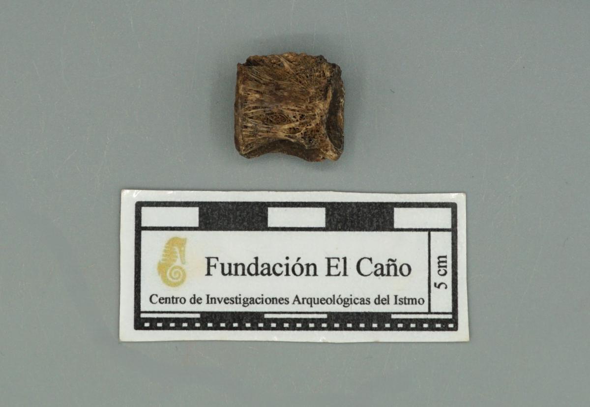 Vista del anverso de la vértebra de pescado HF7183 que no ha sido trabajada ni pulida.
