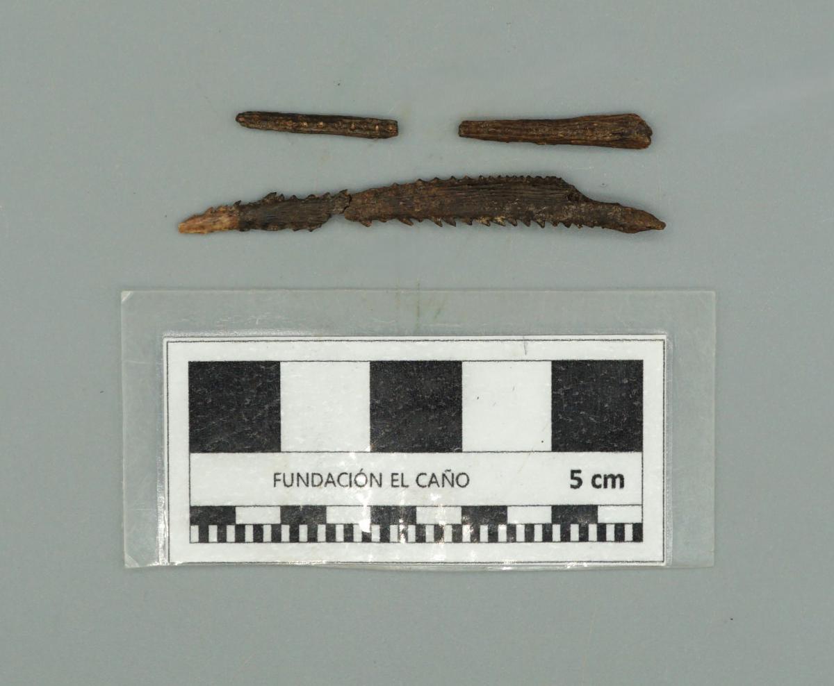 Fragmentos de espina caudal de raya, una de ellas parece haber sido transformada en algún tipo de arpón.