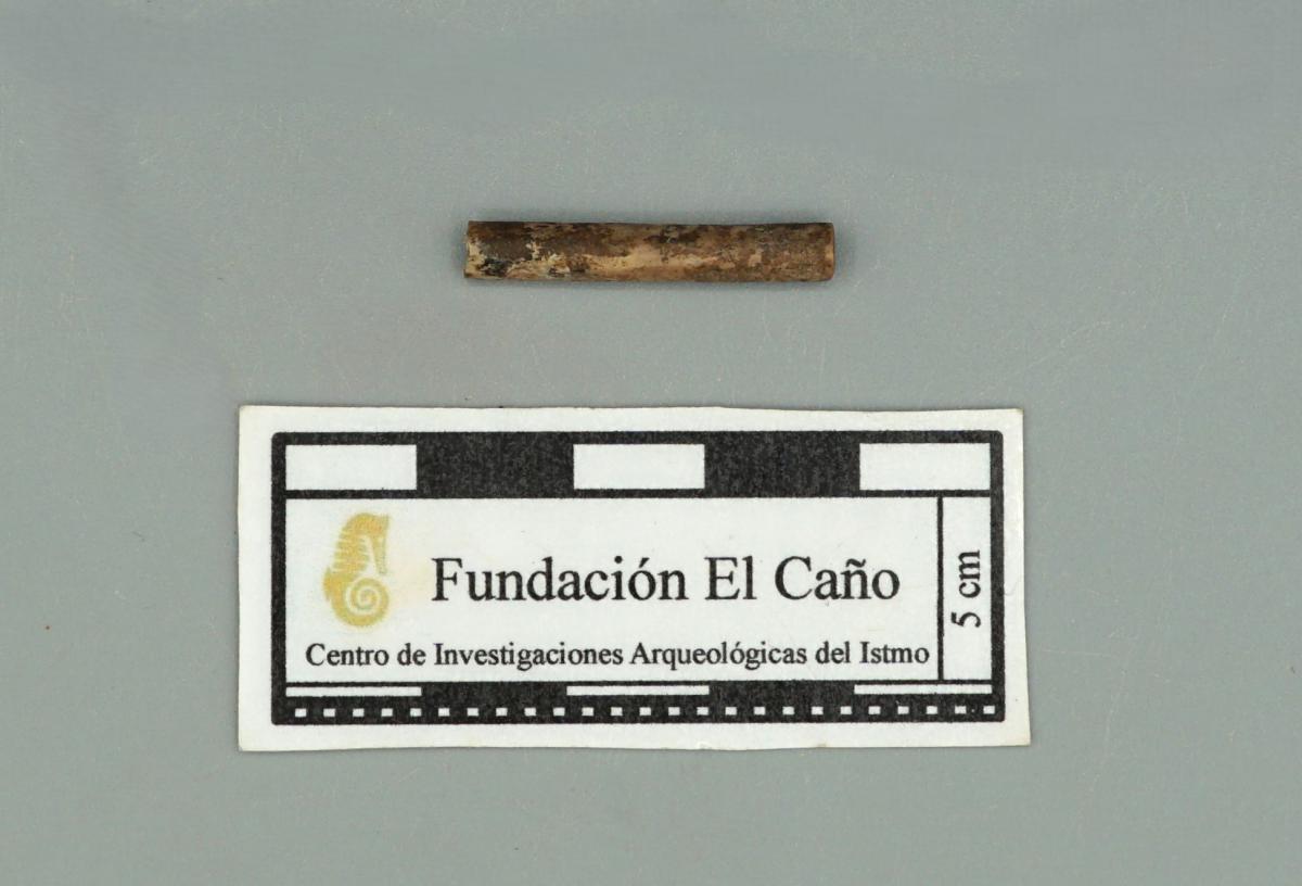 3548 - Tubo de hueso de fauna. El artefacto se encuentra fragmentado y presenta un evidente pulimento en su superficie. Se infiere que originalmente se trató de un hueso largo, con un conducto que...
