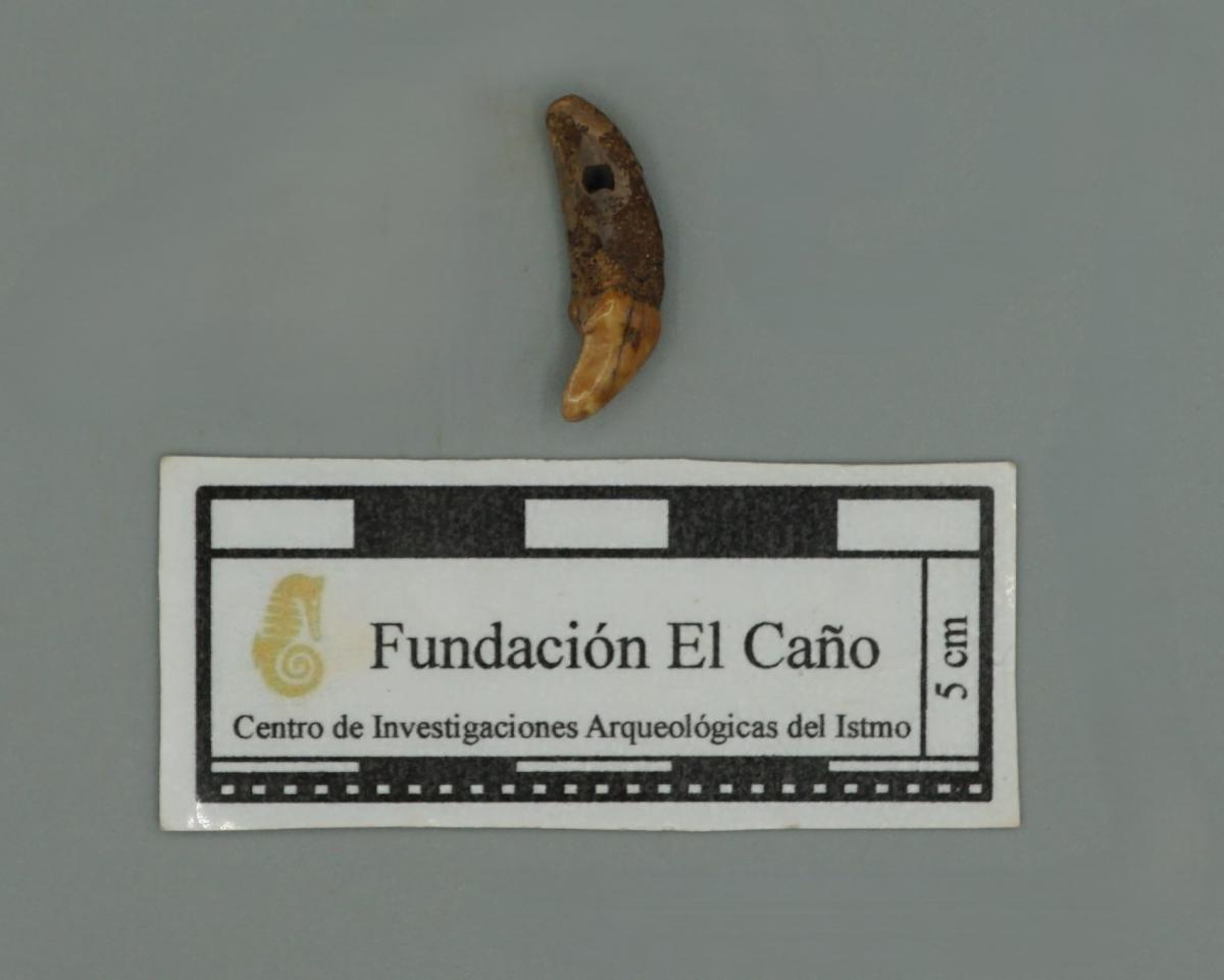 3592 - Canino de perro perforado. Aunque se encuentra fragmentado, se conservan sus partes.