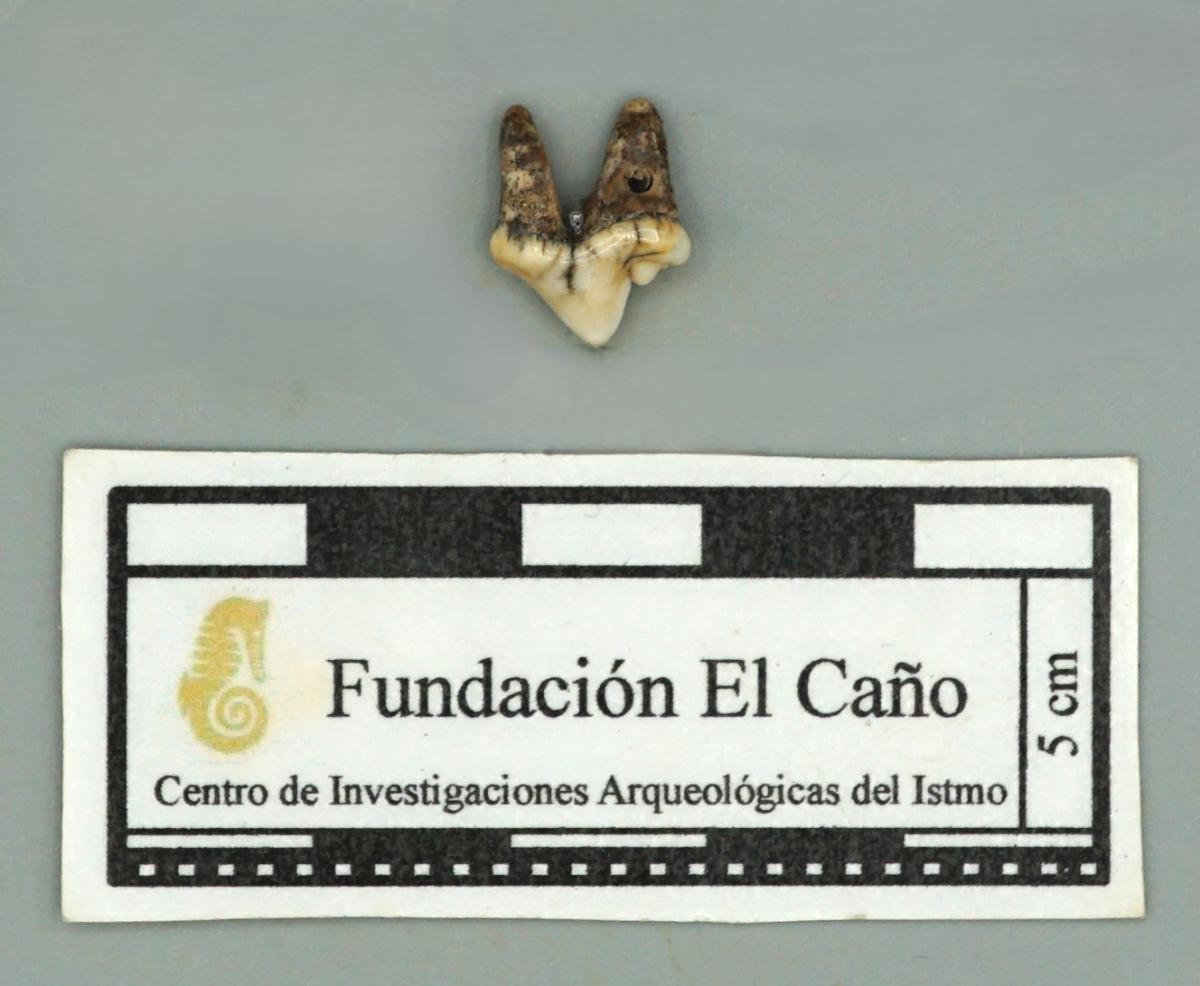3571 - Diente perforado de tiburón. La perforación indica que pudo haber formado parte de un artefacto ornamental.