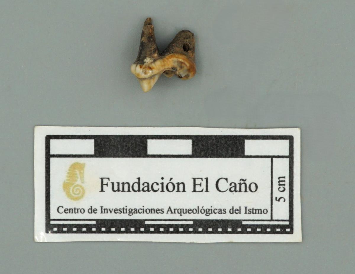 3571 - Diente perforado de tiburón. La perforación indica que pudo haber formado parte de un artefacto ornamental.