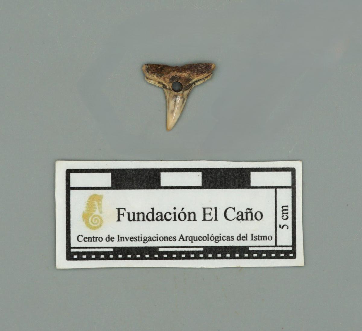 3571 - Diente perforado de tiburón. La perforación indica que pudo haber formado parte de un artefacto ornamental.