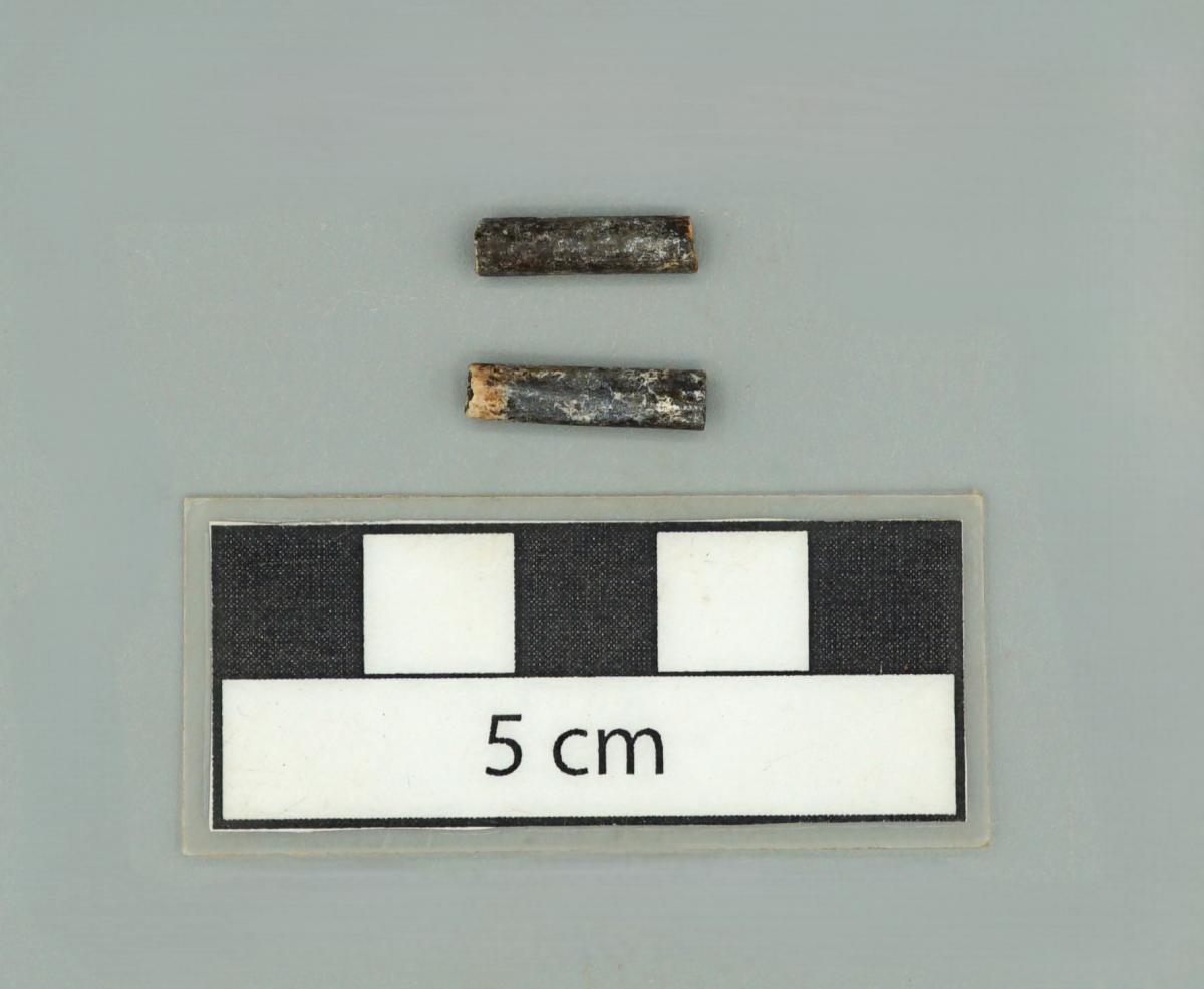 3548 - Tubo de hueso de fauna. El artefacto se encuentra fragmentado y presenta un evidente pulimento en su superficie. Se infiere que originalmente se trató de un hueso largo, con un conducto que...
