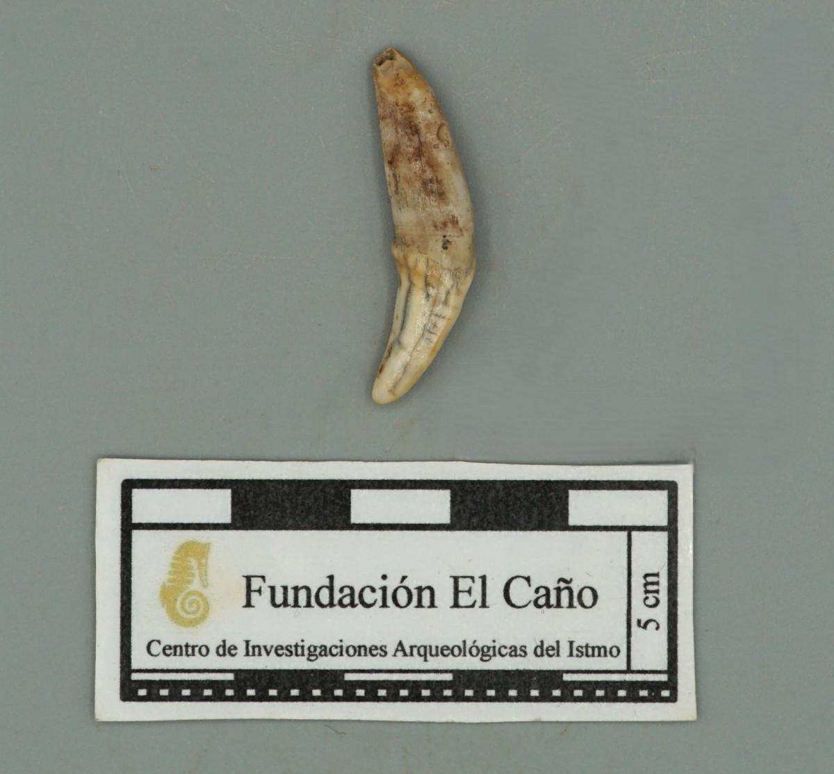 3592 - Canino de perro perforado. Aunque se encuentra fragmentado, se conservan sus partes.