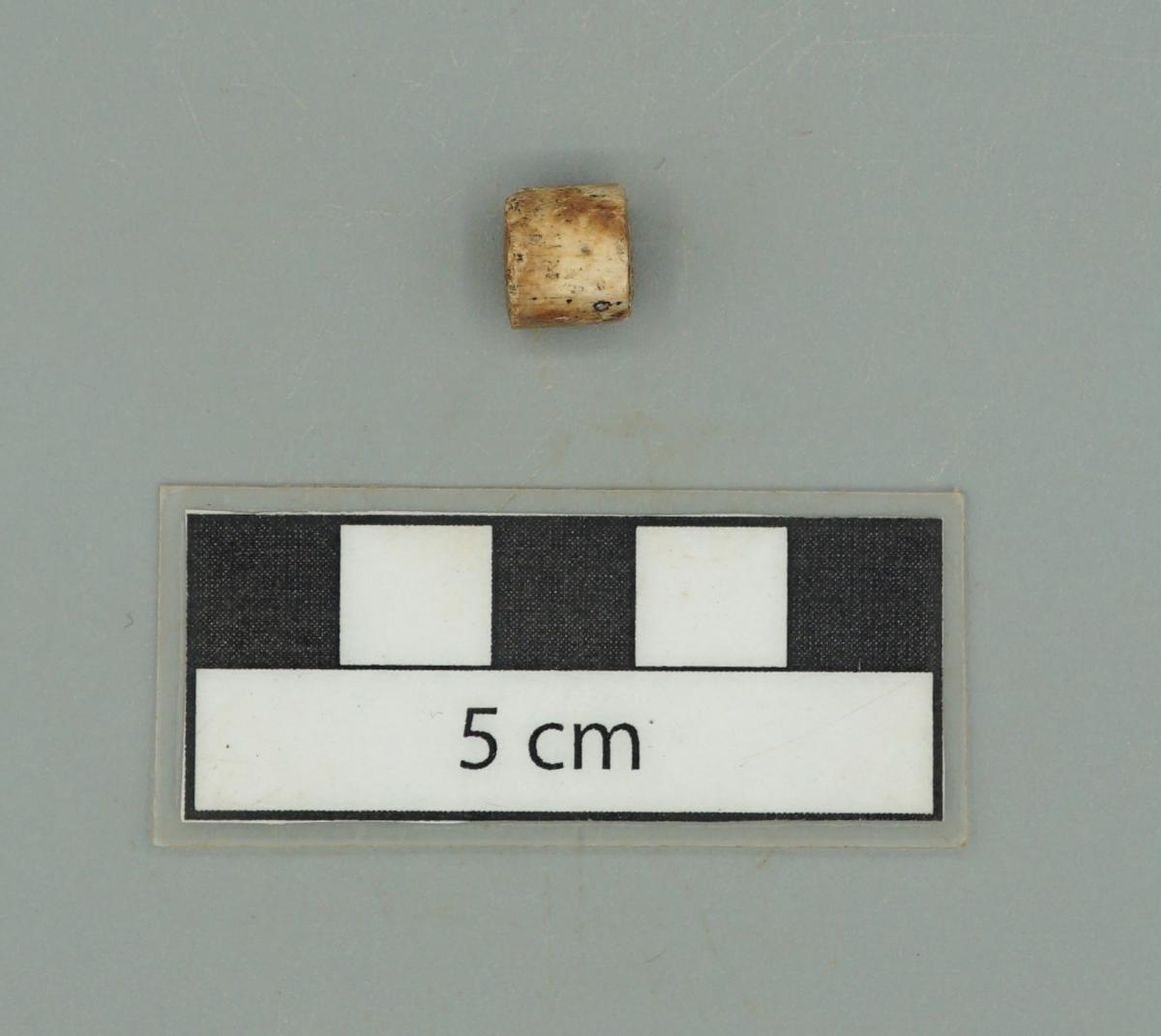 Cuenta de hueso de fauna. Se encuentra pulida.