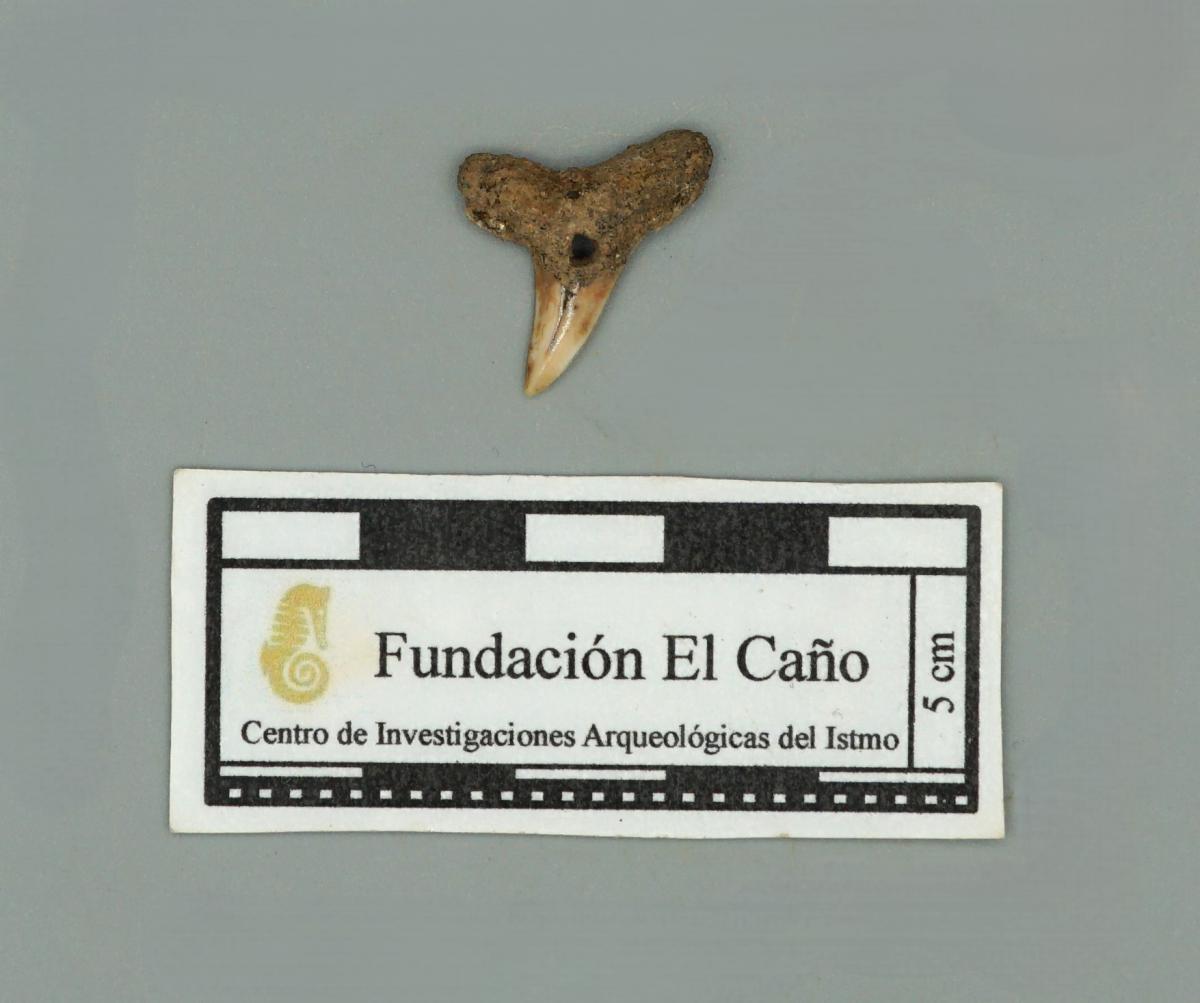 3571 - Diente perforado de tiburón. La perforación indica que pudo haber formado parte de un artefacto ornamental.
