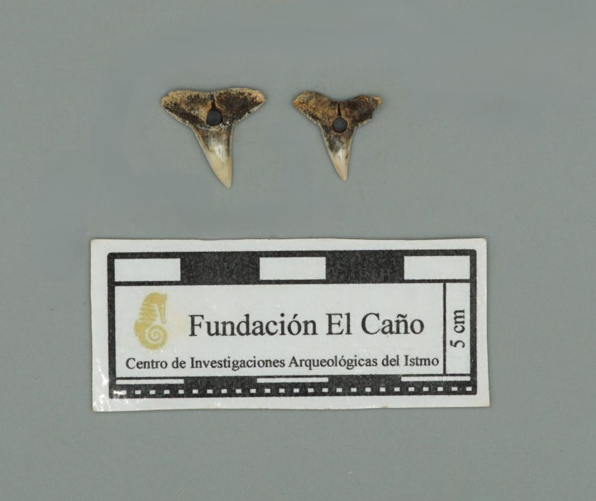 3570 - Diente perforado de tiburón. La perforación indica que pudo haber formado parte de un artefacto ornamental.