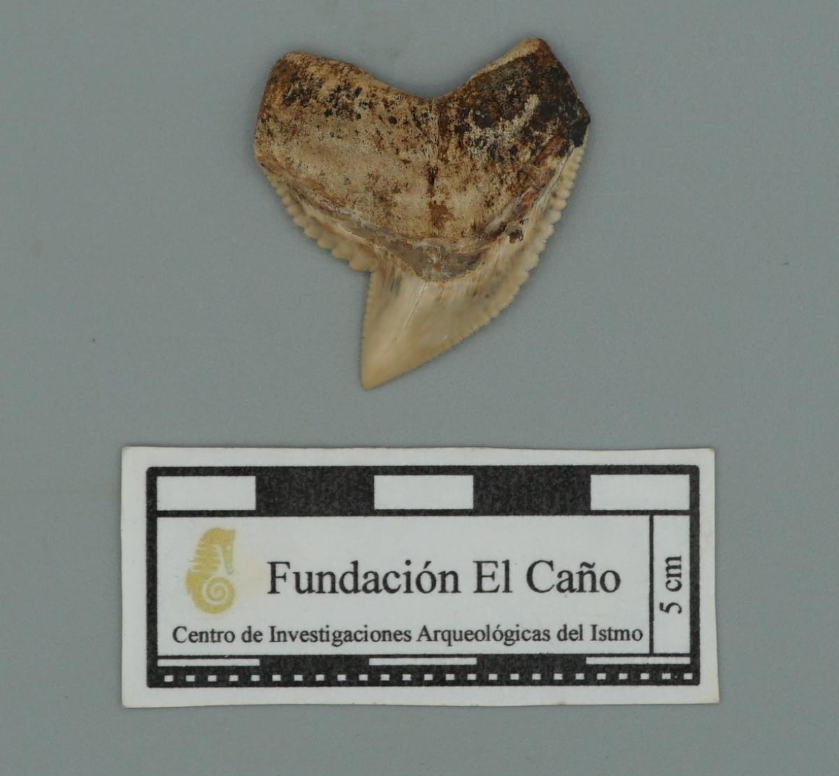 3571 - Diente perforado de tiburón. La perforación indica que pudo haber formado parte de un artefacto ornamental.