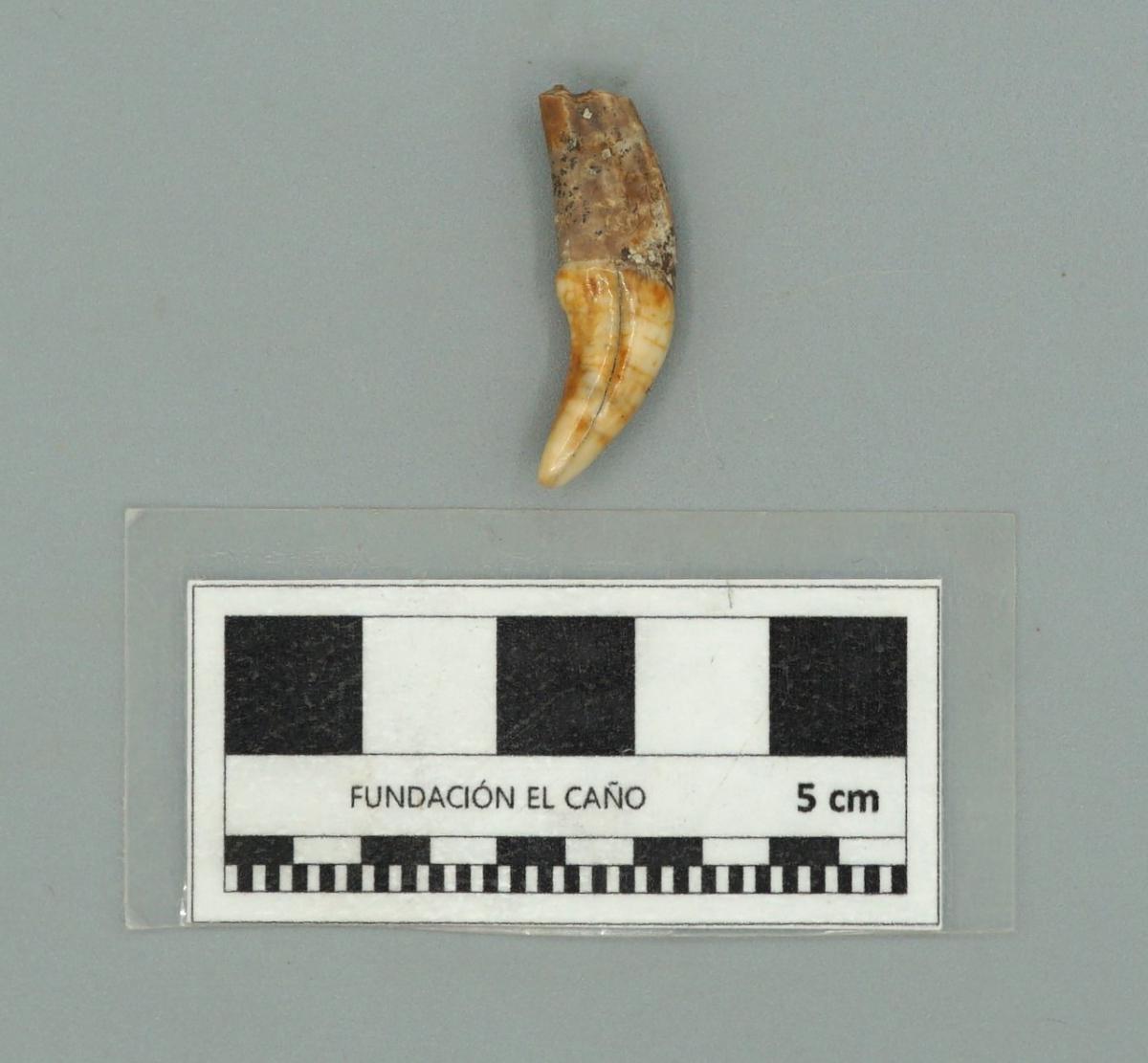 3592 - Canino de perro perforado. Aunque se encuentra fragmentado, se conservan sus partes.