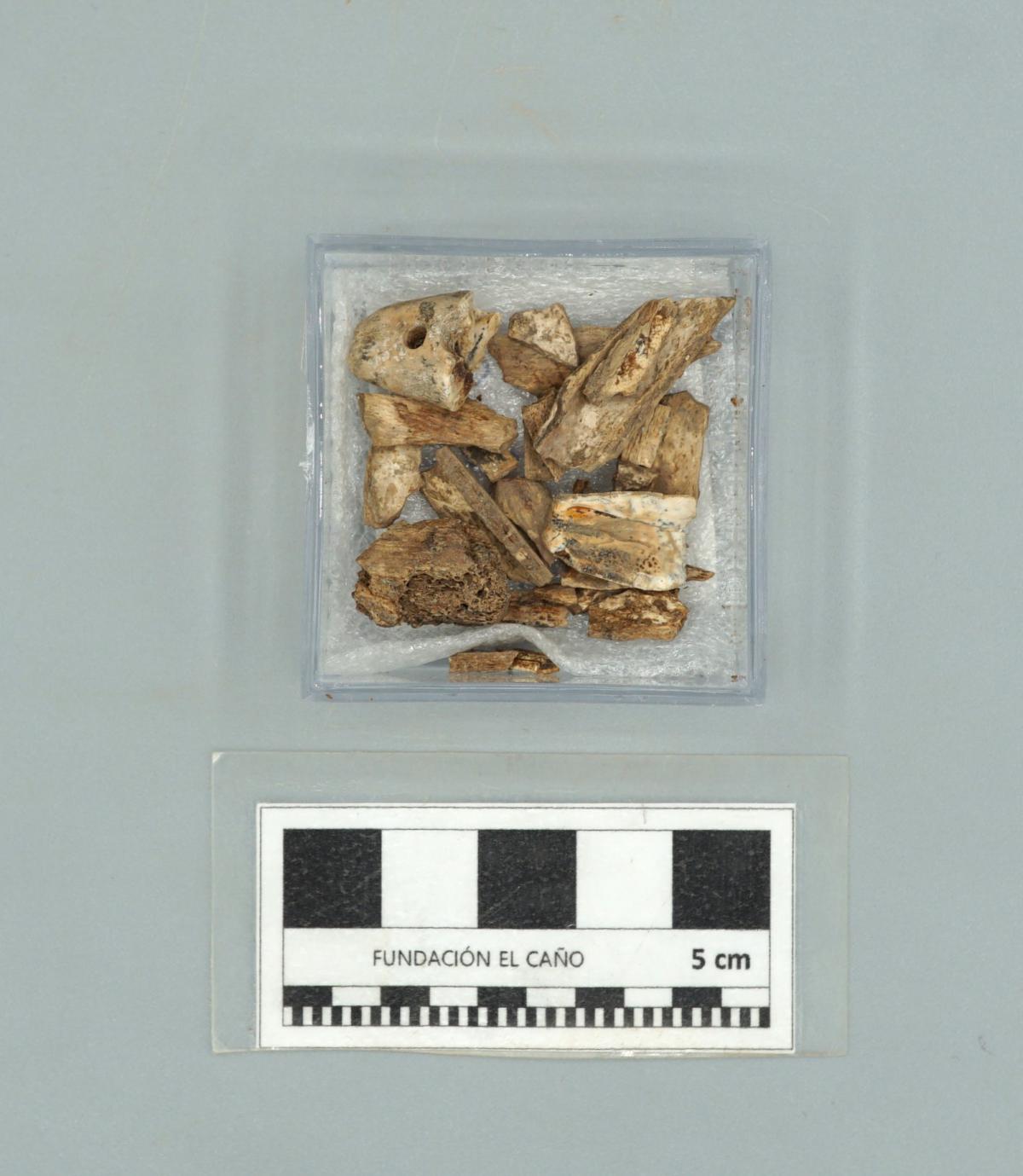 Contiene lo que parece ser fragmentos de dientes de felino y otras clases de fauna.