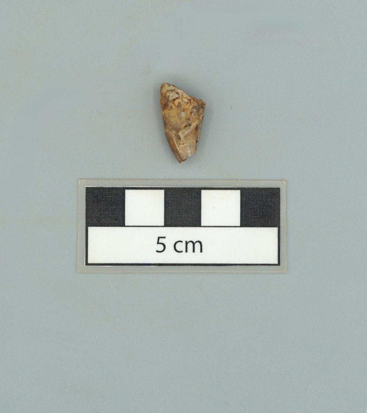3571 - Diente perforado de tiburón. La perforación indica que pudo haber formado parte de un artefacto ornamental.