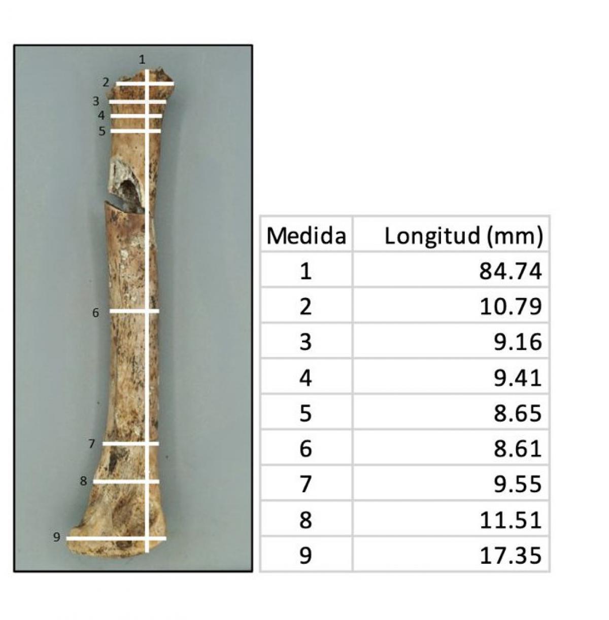 Medidas tomadas en milímetros del metatarsiano HF15176.