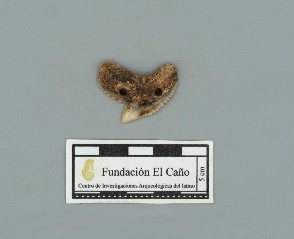3570 - Diente perforado de tiburón. La perforación indica que pudo haber formado parte de un artefacto ornamental.