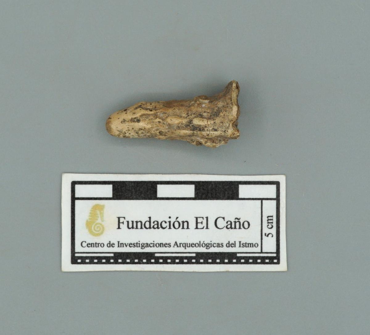 3571 - Diente perforado de tiburón. La perforación indica que pudo haber formado parte de un artefacto ornamental.